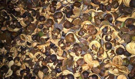 茶籽摘回来之后还要放在楼上的空地板平铺晒干,但是不能用阳光暴晒,要让它自然晾干,还需要经常翻面,一面有虫子弄坏掉茶籽。