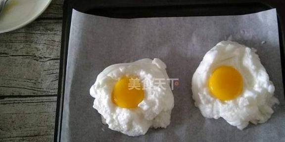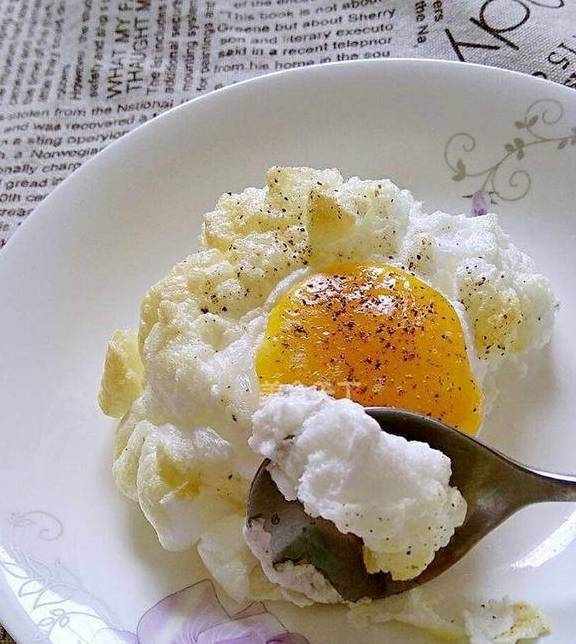 其实还有一种更加洋气、高大上的吃法,就是被称为网红鸡蛋的“云朵鸡蛋”,先将蛋清打成奶油状,然后将蛋黄放进蛋清上面再放进烤箱里面烤一会,出来之后奶油就像是云朵一样,而蛋黄就像是太阳,所以被大家称为云朵鸡蛋!