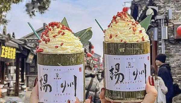 清洗干净的竹筒用作杯子,奶茶、咖啡、水果茶作为基底,几大圈奶油顶搭配着水果冻干是竹筒奶茶的统一公式,当然最重要的是要在竹筒表面贴上南京、上海、苏州等城市名标签。南至广州、深圳,北到沈阳、哈尔滨,全国各地的消费者都爱上打卡竹筒奶茶。