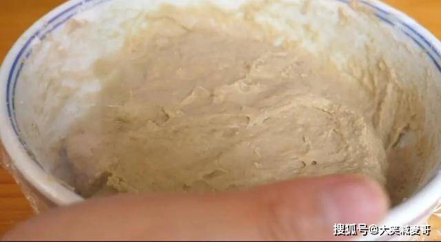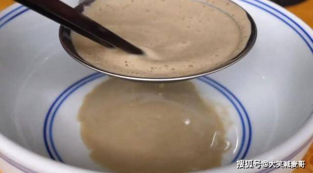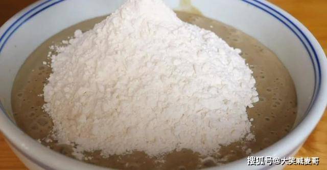7. 过滤干净之后,在里面加4克酵母粉、20克白糖,搅拌均匀后,加350克面粉,混合搅拌成这样粘稠的面糊。
