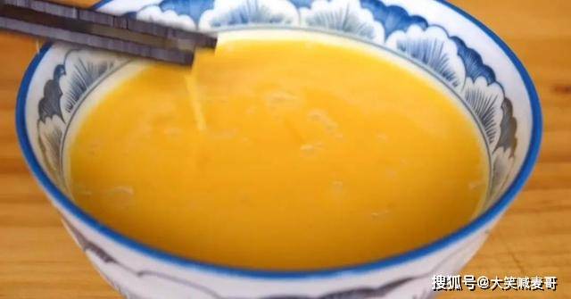 4. 取一个小碗,碗中打入3个鸡蛋,用筷子将鸡蛋快速搅散。