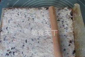 14、翻面倒入烤盘中,此时借助油布趁热翻面很轻松,可以再稍微擀一擀表面,也可以不擀。