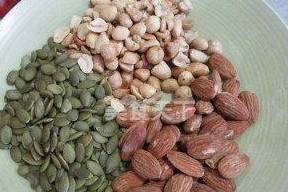3、干果仁备好,花生米炒好要薄掉红色外衣。