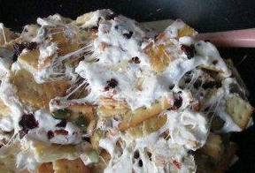 12、关火,翻拌,让棉花糖和其他食材粘合在一起。