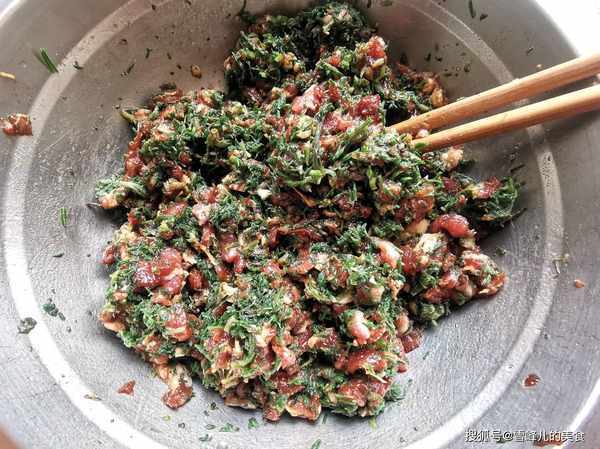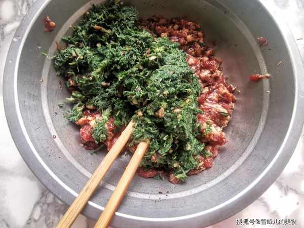 第五步:充分地拌匀,这款白蒿猪肉馅就拌好了,这样的饺子馅鲜美多汁特别香。注意白蒿在捏去水分的时候不要捏的太干,留有适量的水分在里面,饺子才会多汁。