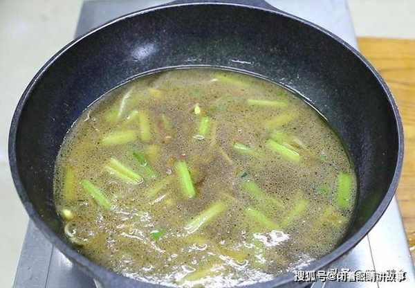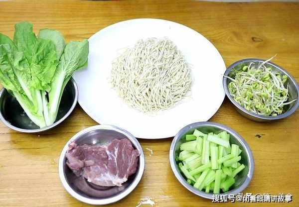 锅内烧油 油温五成热时放入肉丝炒出香味,闻到肉香味以后放入葱花、姜片一起翻炒,加入一点老抽上色翻炒均匀,放入芹菜、黄豆芽、开大火炝出香味,沿锅边加入两碗清水,加入适量的食盐、鸡粉、胡椒粉、十三香、生抽调味,面汤要稍微咸一点煮出来的面条才咸淡适中,盖上锅盖,大火把汤烧开。