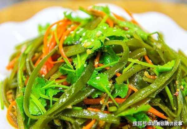 盆里加入适量的食盐,味精,白糖,再加入适量的生抽,香醋,花椒油,辣椒红油,用勺子搅拌均匀化开调料后,倒入蒜末再次搅拌均匀,倒入胡萝卜和海带丝翻拌均匀,最后再加一点香菜就可以装盘了,一道简单好吃的凉拌海带丝就做好了。