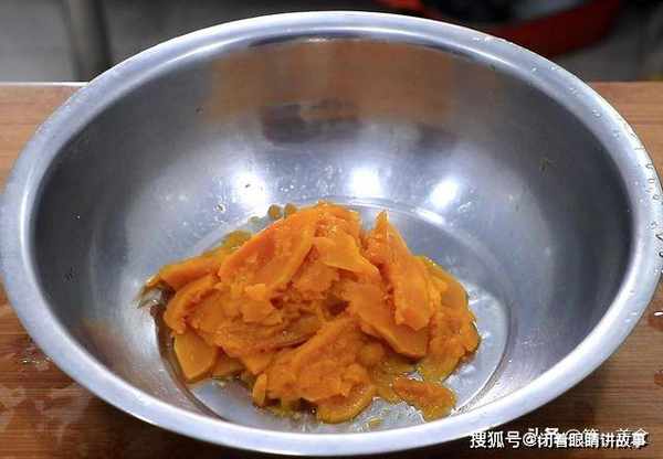 15分钟以后把南瓜取出倒入盆中,静置晾凉备用。