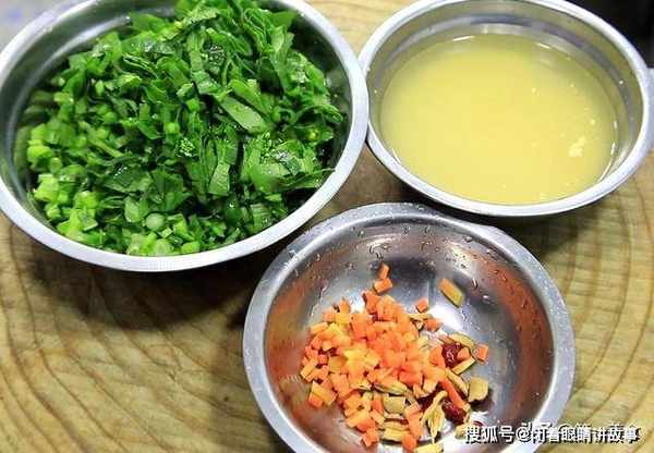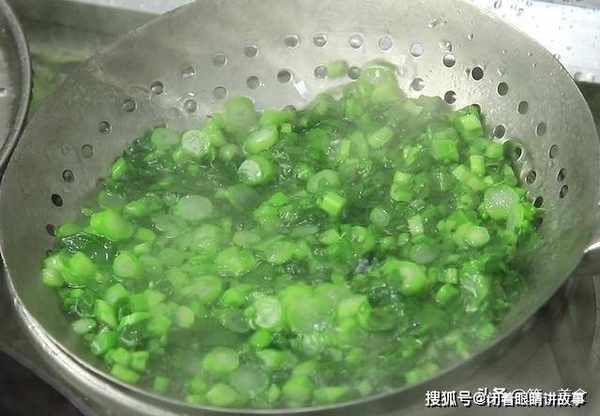 准备鲜嫩的芥兰一小把,切成碎末,大家也可以根据自己的口味,换成其他时令蔬菜,口感不受影响