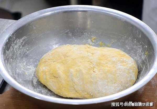 盆中加入白糖5克,再加入少许清水,喜欢吃甜一点的可以多加一些白糖,把南瓜搅拌成细腻的南瓜糊,放入面粉300克,酵母3克,米酒10克用来促进发酵,先把面粉搅成面絮,再揉成软硬适中的光滑面团,面团揉光滑以后用保鲜膜盖住,密封发酵1个小时。