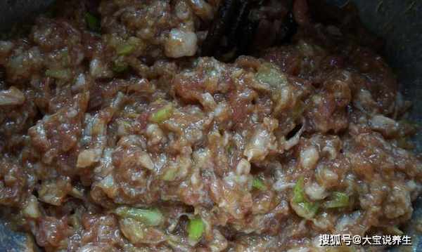 第二步:这时候我们就要调整馅料了。将猪肉切成馅加入葱花和姜末,再撒上适量的花椒水分几次,然后开始调味,加入适量的盐、生抽、蚝油、糖、胡椒粉,最后将芝麻油顺着一个方向搅拌均匀,用力搅拌。