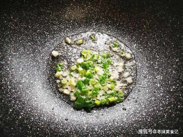 4、接下类我们把炒锅预热一下,倒入适量的食用油,油微微烧热的时候,放入葱花炒出香味,油如果太热,葱直接就炸枯了,反而不好吃。