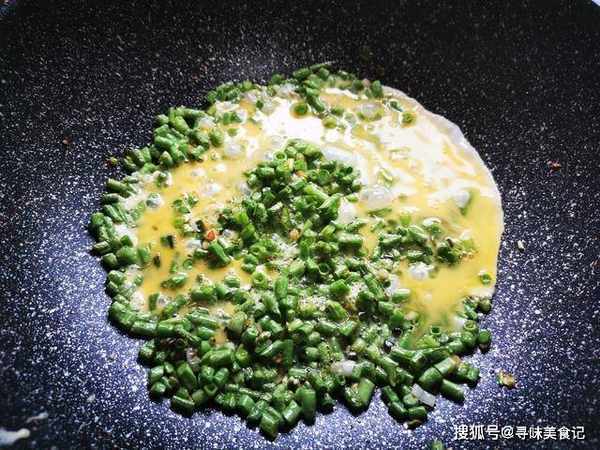 2、豆角差不多炒熟的时候再放入鸡蛋一起炒,这样炒出的豆角和鸡蛋的口感特别好,比起先炒鸡蛋会更加好吃哟,大家可以试试。