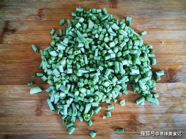 1、首先我们准备一把长豆角,把它翟洗干净,去掉两头,切成稍短一点的豆角粒,放在一旁备用。