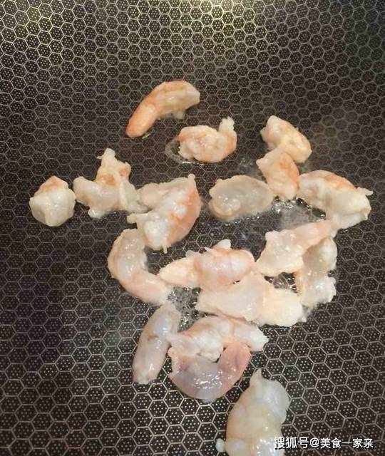 5.热锅,虾仁放锅内干酪变色捞出备用,