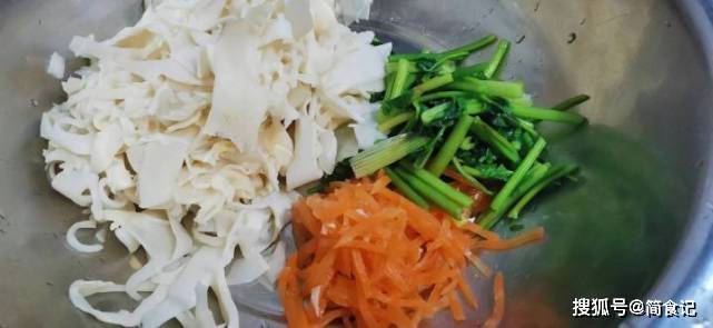 做法,1:将袋装的笋丝取出洗净,之后将其沸水下锅,汆烫1分钟左右。之后将其捞出,马上过凉,之后控干水分待用。