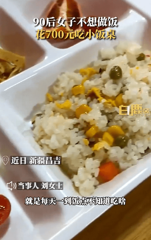 3月16日,据白鹿视频报道,近日,新疆昌吉一90后女子因不想自己做饭,花700元在家附近报名了一个“小饭桌”,引起广泛关注。