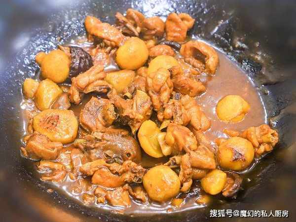 大火烧开以后转中小火焖煮15分钟,然后转大火收汁直至板栗完全熟透,撒上葱花美味即成。