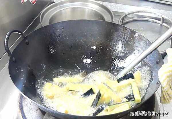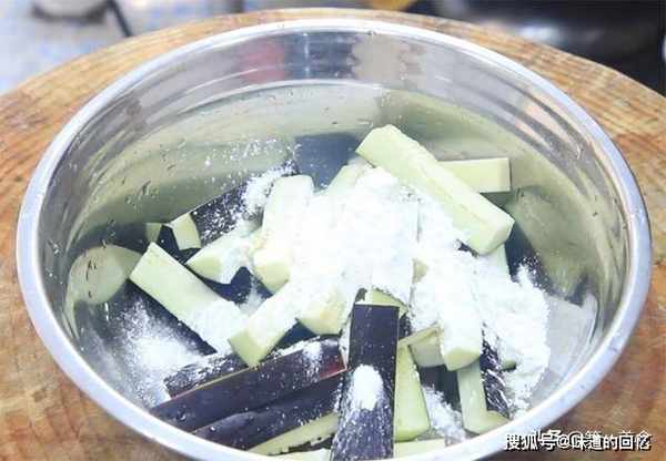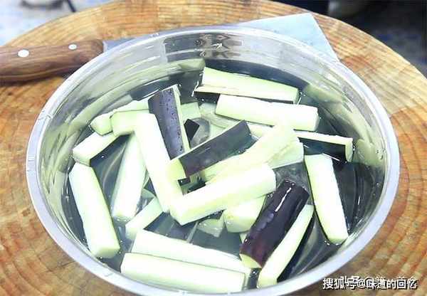 这一步的目的是为了防止茄子在空气中氧化变黑,在炸制时也不会吸油