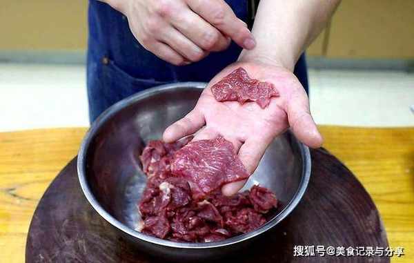 准备一块牛里脊肉,切成均匀的肉片。切好以后加入适量的食盐、胡椒粉、鸡粉,少许食用碱,倒入适量的蚝油、老抽抓拌均匀,淋入料酒去腥,反复的抓揉至起胶、发黏,再加入少许水淀粉锁住牛肉的水分,反复摔打上劲后淋入少许植物油,腌制5分钟。