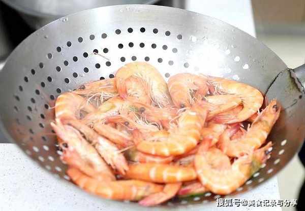 闻到浓郁的葱香味以后把鲜虾倒入锅中,开锅以后再停留个三四秒钟即可倒出,这时候的虾肉最为鲜嫩,不需要放任何调料。最后把葱段和姜片挑出来,把大虾均匀摆放在盘中。