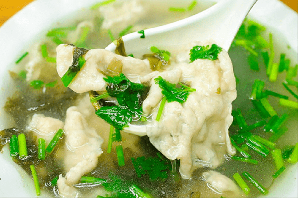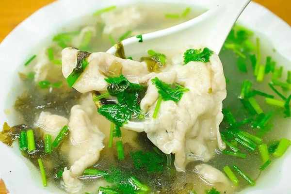 4.放入紫菜稍微烫一下即可出锅,连汤带肉 一起冲入刚刚调好的汤盆里面,美味即成。