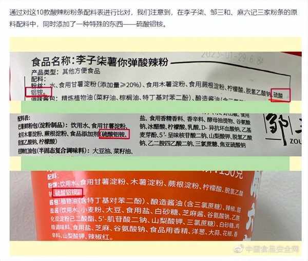 ▲麻六记被发现添加硫酸铝铵,虽在合法范围内,但民众要小心过量摄取会影响身体健康。 (图/翻摄自微博/中国食品安全网)