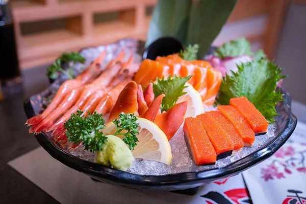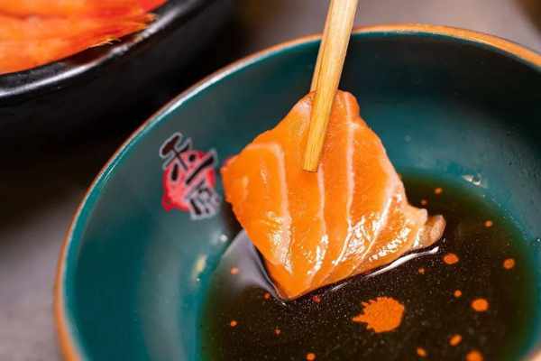 新鲜的刺身轻轻蘸上酱汁