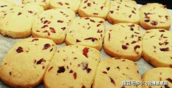 这款饼干简单易做,不用送黄油,小红莓也可以换成葡萄干、樱桃干等自己喜欢的干果。由于不同烤箱的温度不同,小编建议先烤15分钟,再慢慢增加时间。期间,必须时时监控饼干表面的颜色。刚出炉的曲奇中间可能是软的。冷却后,它就准备好了。变得酥脆。