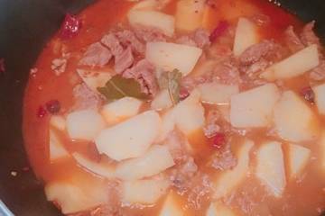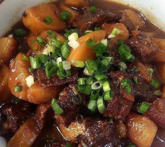 家人很爱吃牛肉,口感扎实切成块状很有大口吃肉大碗喝酒的爽快。牛肉家常最常见的便是用土豆做配菜,烧出来的牛肉裹着土豆的汁尤为好吃。