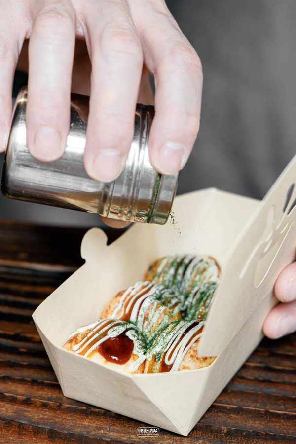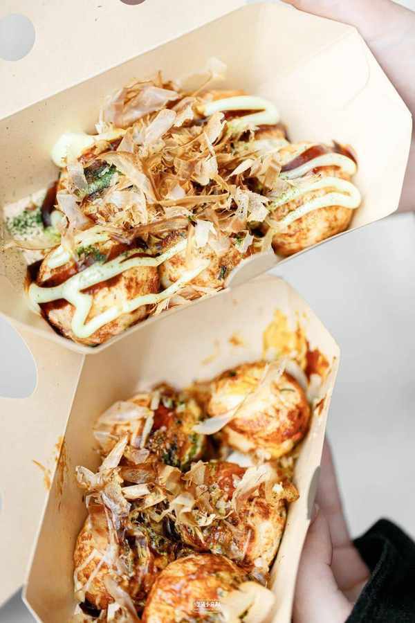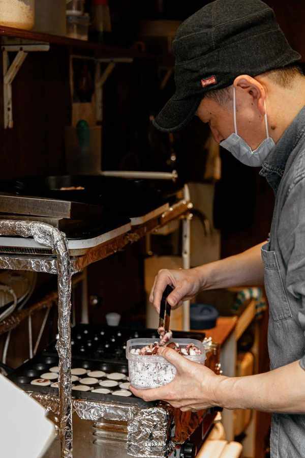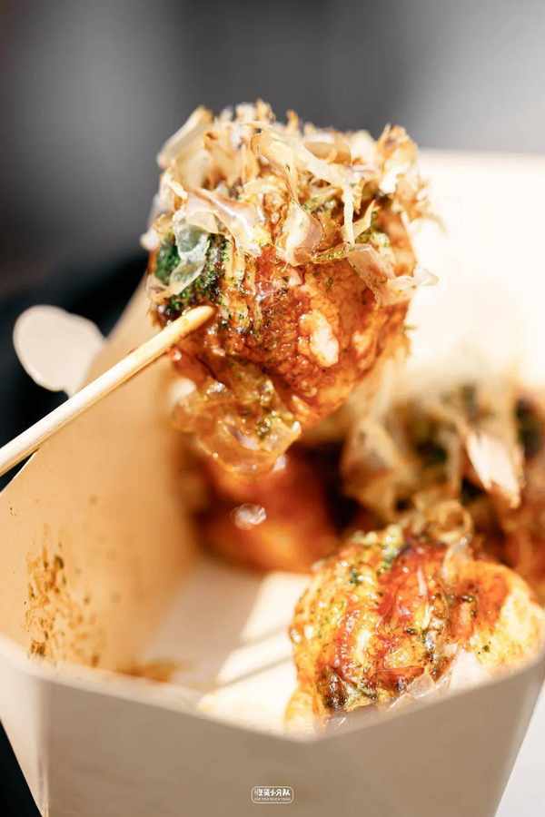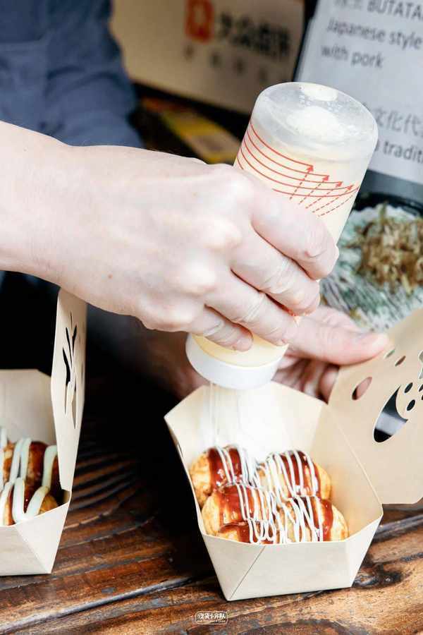 每次吃章鱼小丸子,总不自觉在下单后盯着制作者的一举一动,看小丸子们一颗颗成型,金黄滚烫地装在盒子中被递出来,总会有不小的满足和期待,参与感实在很强。