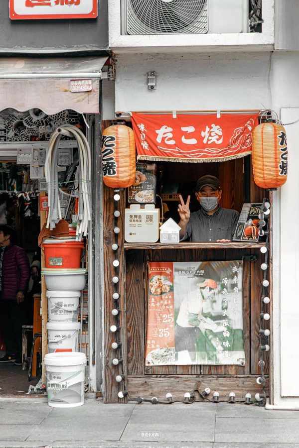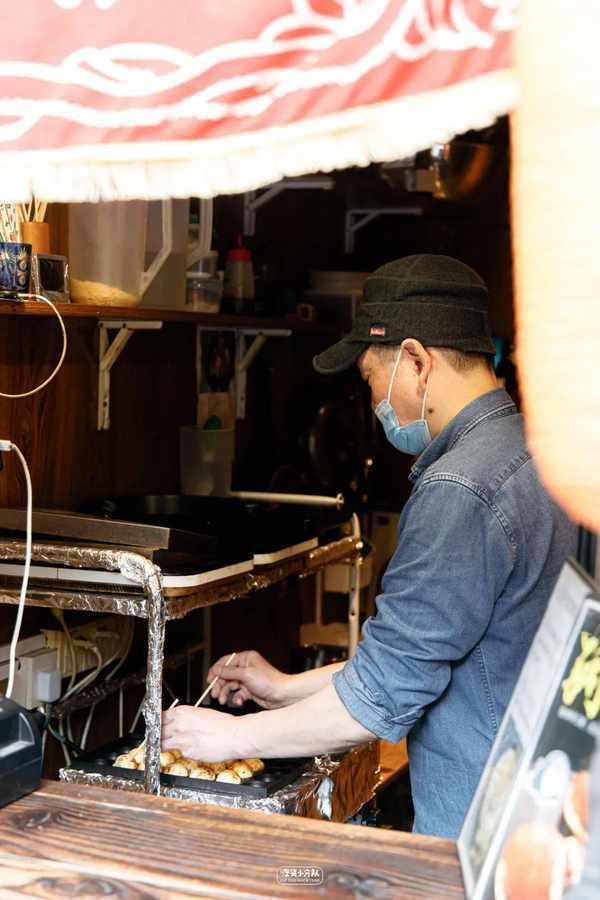 只有一人的小店,高木老板实行8小时工作制,做完就收工。他个性相当热情开朗,普通话说得很好,可以无障碍交流,在他身上能够感受到对亲手制作美食的热爱。行人来来往往,也不乏在这扇小窗前驻足的,温暖小食有时最能抚慰人心。