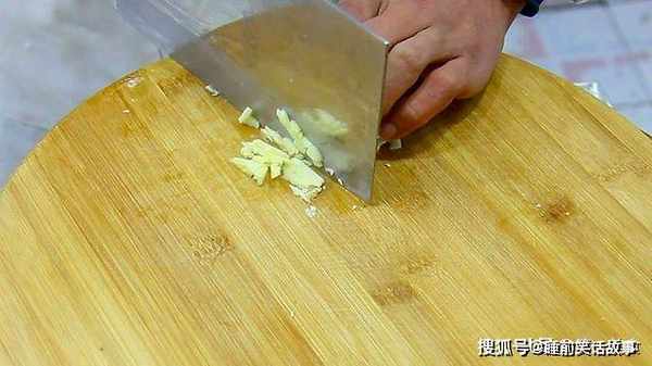 大蒜拍扁后,切成碎沫,放盆中,大蒜杀菌出味。