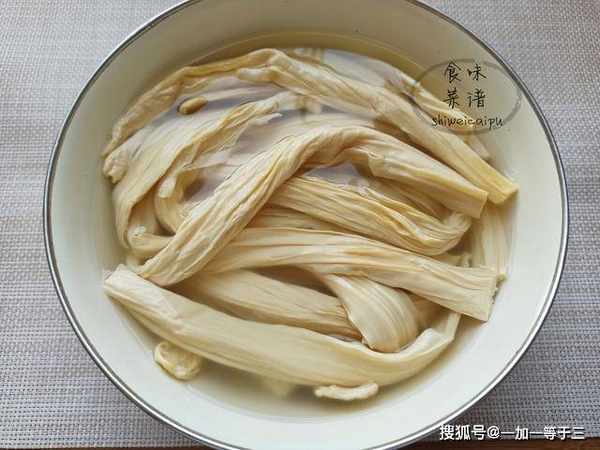 1、淘米水没过腐竹,浸泡2个小时,可以缩短浸泡时间,再用清水冲洗干净,控水切段,想怎么吃都可以。