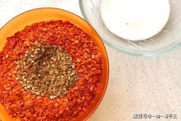 5、小火把锅烧开,不放油不放水,放入50克食盐,小火炒2分钟盛出,再放入辣椒粉100克,花椒面10克,小火翻炒1分钟,然后把盐、花椒面、辣椒面,装盘混合。