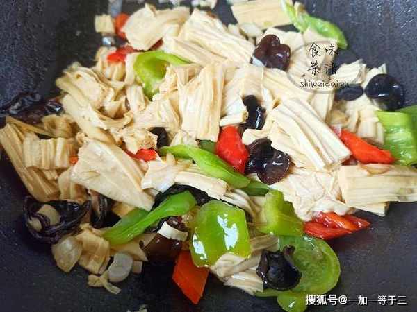 8、一道清炒腐竹就做好了,色香味全,香味浓郁,这样浸泡的腐竹,劲道韧性足,喜欢的朋友可以试一试。