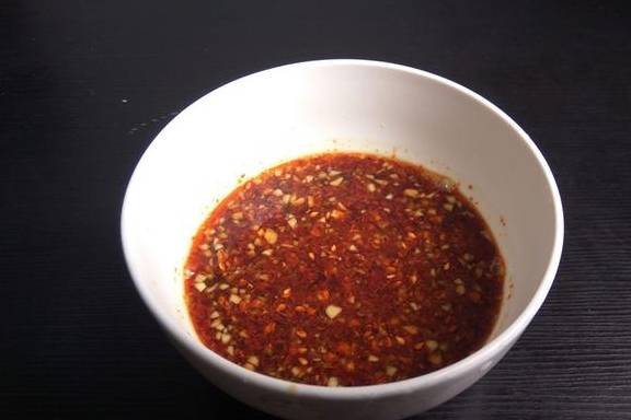3、再调入油泼辣子、老抽、陈醋、鸡精;