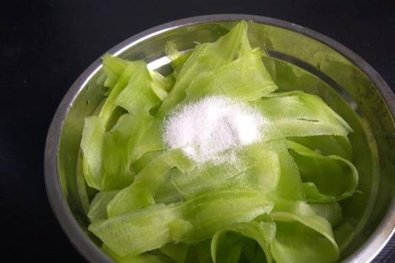 6、莴笋用盐腌制入味;
