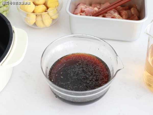 材料:鸡腿肉2只,香菇适量,板栗适量,姜适量,蒜2瓣,葱少许,料酒2勺,生抽5勺,老抽2勺,蚝油1勺,糖少许。