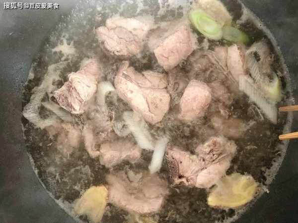 1、猪骨头剁成块,清洗干净,冷水下锅,下入姜片,葱白和料酒,大火煮开,焯煮5分钟,煮出血沫,捞出洗净,沥干水分。