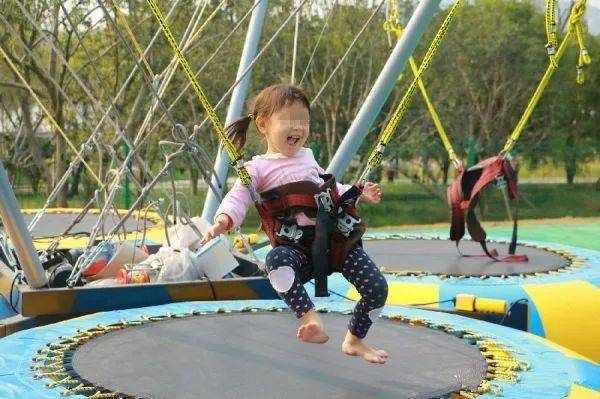 就算是有弹力绳等防护工具,孩子在几米高的上空往下跳时,也可能会造成肢体骨折、损伤脊椎等。