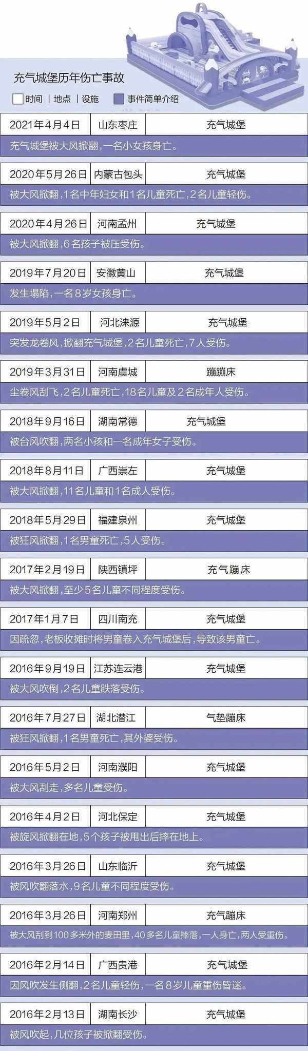来看看近年来,因为充气城堡发生的伤亡事故: