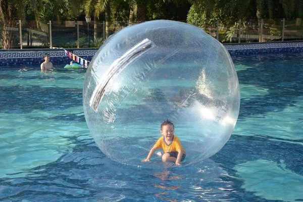 水上步行球,看着就很好玩,孩子在一个塑料大泡泡里面,通过手脚配合,让球在水面滚动行走。