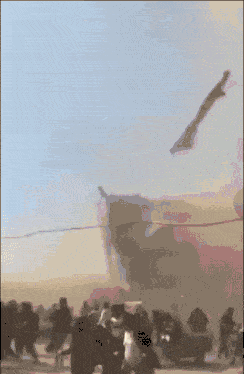 前两天,云南保山一庙会上,一座充气城堡突然被大风吹起。