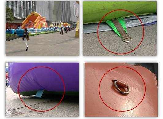 带孩子玩充气城堡前,一定仔细看看经营者有没有将铁链固定在地面上,只有安全措施完备才能确保安全。