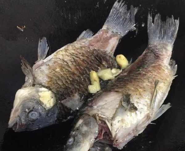 第一步:将鲫鱼腹部去内脏、鱼鳞和黑箔,用清水洗净,沥干水备用。