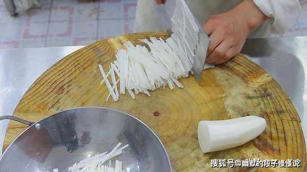 切好片以后改刀切丝,丝切的越细,萝卜越好入味。