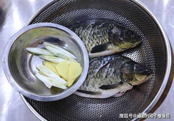 准备两条小鲫鱼,已经提前宰杀好了,在鱼身两侧斜着打上花刀方便入味,注意刀纹不要太深,否则鱼肉容易炖烂,把鲫鱼放在清水中多洗两遍,把腹部的黑膜和上面的血水都洗干净,捞出来控水备用。