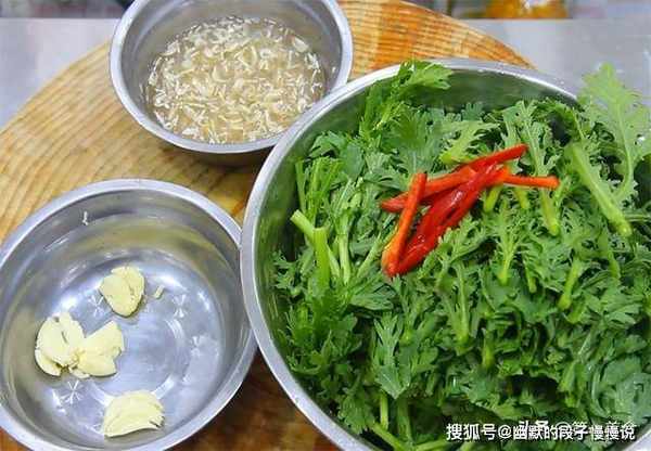 准备茼蒿400克,洗干净以后切成3厘米左右的段。