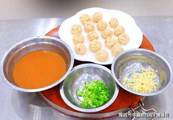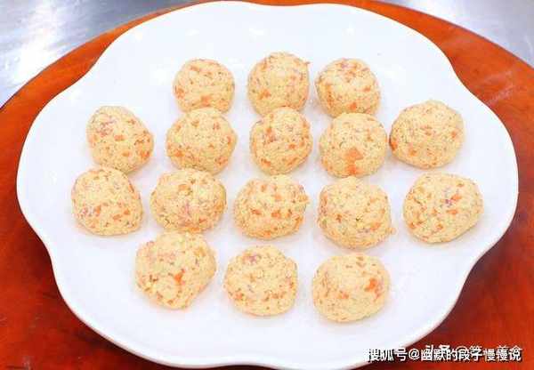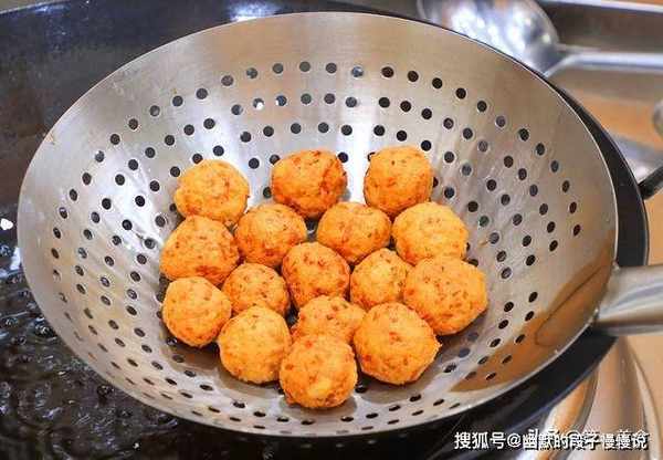 锅内烧油,油温五成热时,把丸子轻轻地放入锅中,保持小火慢慢炸,丸子炸焦、炸成金黄色时捞出来控油。